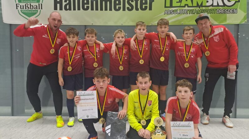Am vergangenen Sonntag wurden in der Sporthalle am Samuel-von-Pufendorf-Gymnasium die ersten Kreismeister der laufenden Saison gekrönt. Bei der Endrunde der E- Junioren setzte sich die Mannschaft vom SV Lichtenberg im Finale gegen den FSV Motor Brand-Erbisdorf erst im 9 Meter Schießen knapp mit 4:3 durch. Zuvor blieben die Lichtenberger in der Vorrunde ungeschlagen und bezwangen im Halbfinale den TV „Vater Jahn“ Burgstädt. Dritter im Turnier wurde der SV Grün-Weiß Breitenau.